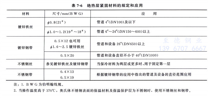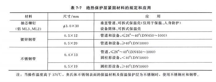 絕熱(re)層緊(jin)固材料的規(gui)定(ding)(ding)和(he)應用(yong)見表(biao)7-6;絕熱(re)保護層緊(jin)固材料的規(gui)定(ding)(ding)和(he)應用(yong)見表(biao)7-7。