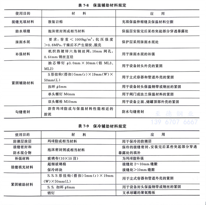 保(bao)(bao)溫輔助(zhu)材料規定見表(biao)(biao)7-8 ,保(bao)(bao)冷輔助(zhu)材料規定見表(biao)(biao) 7-9。