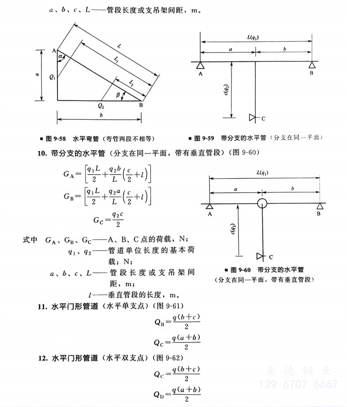 垂直管線上(shang)支點的集(ji)中荷(he)(he)載(zai)等與垂直部分全(quan)部荷(he)(he)載(zai)于(yu)水平部分1/2荷(he)(he)載(zai)之(zhi)和。