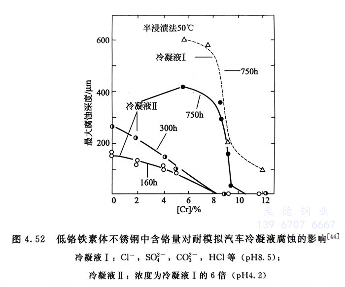 圖(tu)4.52 低(di)鉻鐵素(su)體不(bu)銹鋼中含鉻量對耐模擬汽車冷凝(ning)液腐蝕的影響