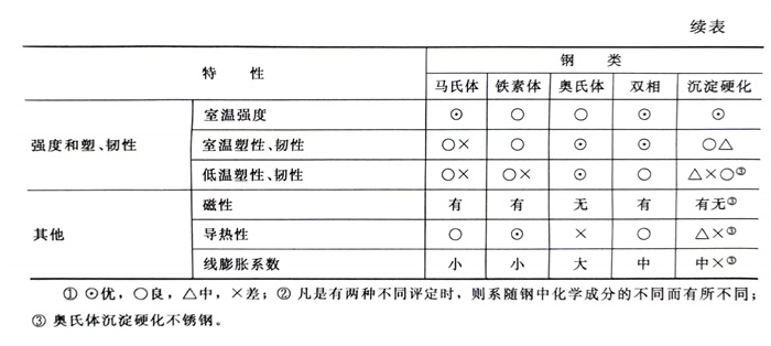 下(xia)面的(de)附表(biao)系前面所述五大類不銹鋼性能特(te)點的(de)簡要匯(hui)總,供(gong)讀(du)者參考。