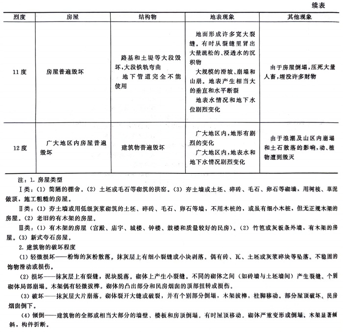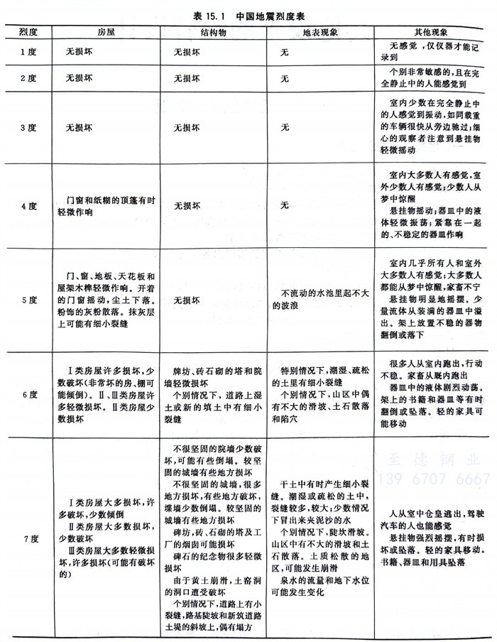 地震對地表和地表建筑物的影響和破壞的強烈程度,稱為地震烈度(表15.1)。