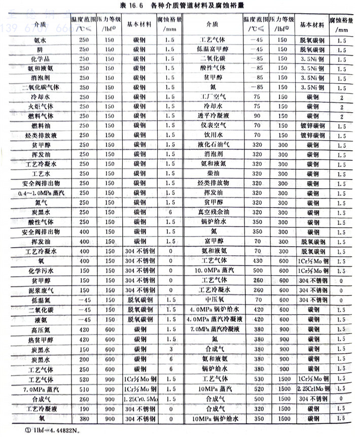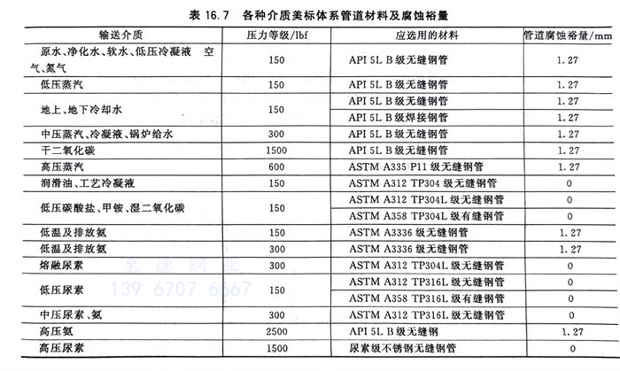 各種介質(zhi)管道材料及腐蝕裕量見表(biao)16.6、表(biao)16.7。