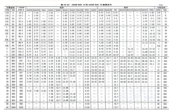 ①. ASME B36.10 和(he)ASME B36.19壁(bi)厚(hou)系列見表16.24。