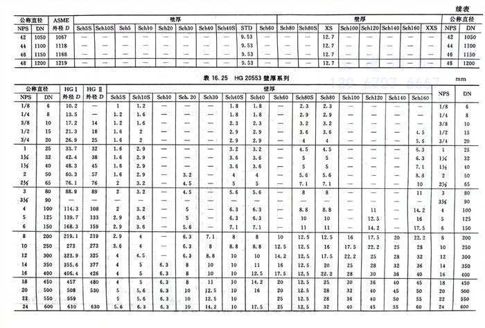 ②. HG 20553壁厚系列見表(biao)16.25。