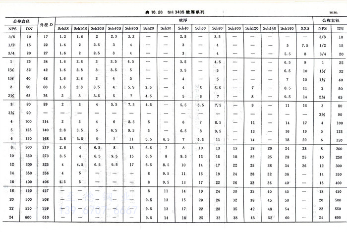 ③. SH 3405 壁厚系(xi)列(lie)見(jian)表16.26。