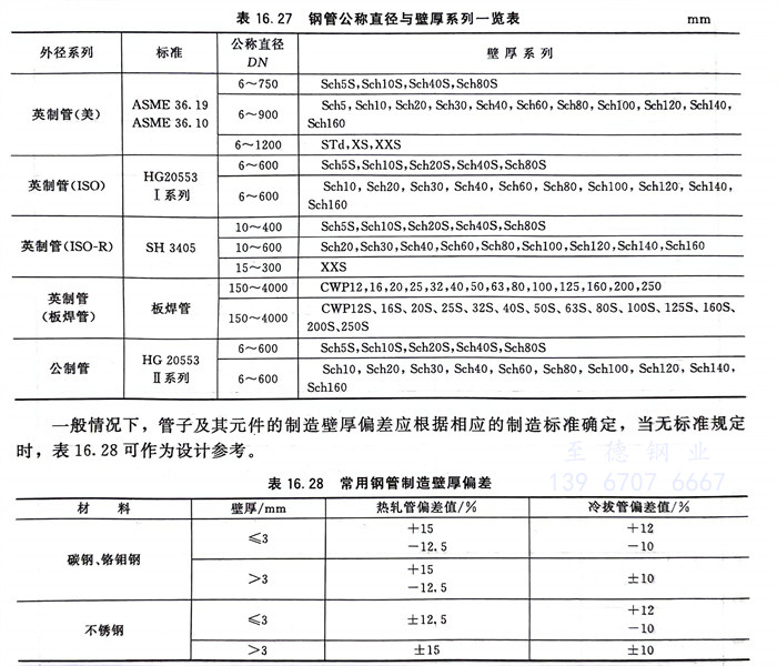 各(ge)標準鋼(gang)管公稱直徑與壁(bi)厚系列一覽表見表16.27。