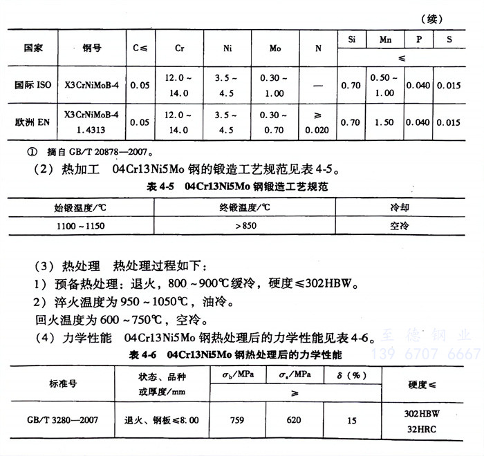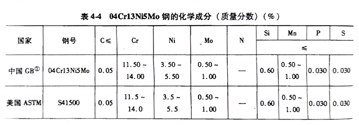 04Cr13Ni5Mo鋼熱處理后的力學性能見表4-6。