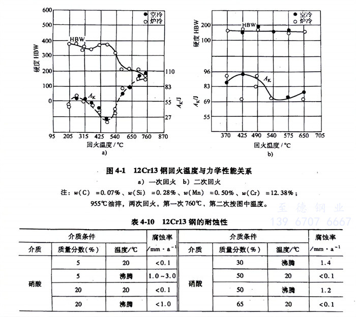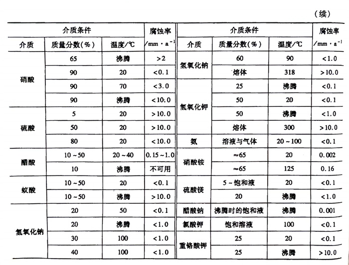 12Cr13 鋼具有不(bu)銹性(xing),在室(shi)溫(wen)的稀(xi)硝酸及(ji)弱有機酸中也有一定耐蝕性(xing)(見(jian)表4-10)。