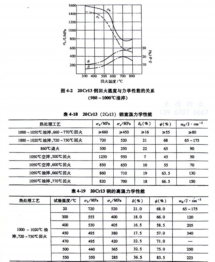 不同回火溫(wen)度(du)的力學性(xing)能見(jian)表(biao)4-17和(he)圖4-2,其(qi)室溫(wen)力學性(xing)能見(jian)表(biao)4-18,高溫(wen)力學性(xing)能見(jian)表(biao)4-19。