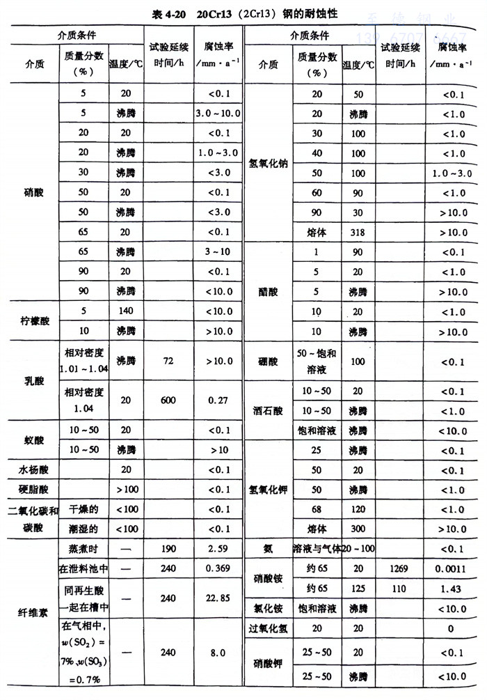 20Cr13(2Cr13)420不銹鋼(gang)的耐蝕性能見表 4-20