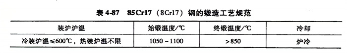 85Cr17(8Cr17)、S44003、SUS440B不銹鋼(gang)鍛造工藝規范見表4-87。
