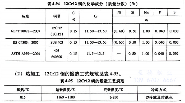 12Cr12(1Cr12)SUS403、S40300不銹鋼的(de)化學(xue)成分(fen)見表4-94。