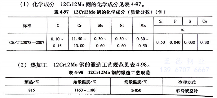 12Cr12Mo(1Cr12Mo)不銹鋼的化學成分見表4-97。