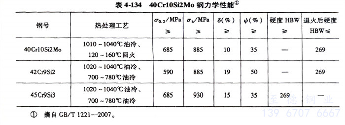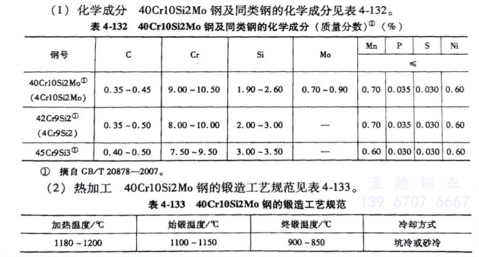 40Cr10Si2Mo(4Cr10Si2Mo)不銹鋼及同類(lei)鋼的化學成分見表4-132。
