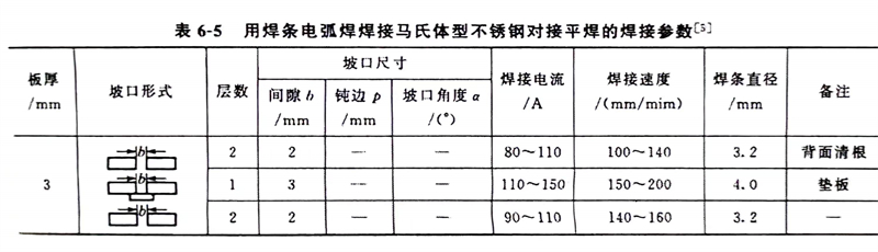 焊(han)接(jie)(jie)(jie)時應選用較(jiao)大的(de)焊(han)接(jie)(jie)(jie)電流,以增(zeng)大熱(re)輸入量(liang),讓接(jie)(jie)(jie)頭(tou)緩(huan)慢冷(leng)卻。防止焊(han)后接(jie)(jie)(jie)頭(tou)產生粗大硬(ying)脆的(de)馬(ma)氏體和應力集中而導(dao)致接(jie)(jie)(jie)頭(tou)產生冷(leng)裂紋。焊(han)條電弧焊(han)焊(han)接(jie)(jie)(jie)馬(ma)氏體型(xing)不銹鋼(gang)的(de)焊(han)接(jie)(jie)(jie)參數見表6-5。