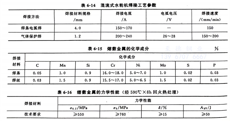 焊接材料(liao):Cr16-Ni5-Mo1合金(jin)(jin)體系的HS367L焊絲及配套焊條,熔敷金(jin)(jin)屬的化學成分和(he)力學性能(neng)(neng)分別列于(yu)表6-15和(he)表6-16,接頭的力學性能(neng)(neng)列于(yu)表6-17。