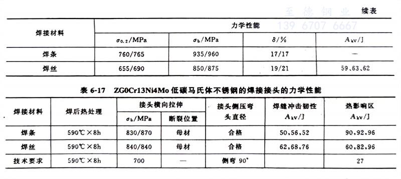 表(biao)(biao)6-12 ZG0Cr13Ni4Mo低碳馬(ma)氏體(ti)不銹(xiu)鋼的化學成分(fen),表(biao)(biao)6-13 ZG0Cr13Ni4Mo低碳馬(ma)氏體(ti)不銹(xiu)鋼的力學性能(neng)