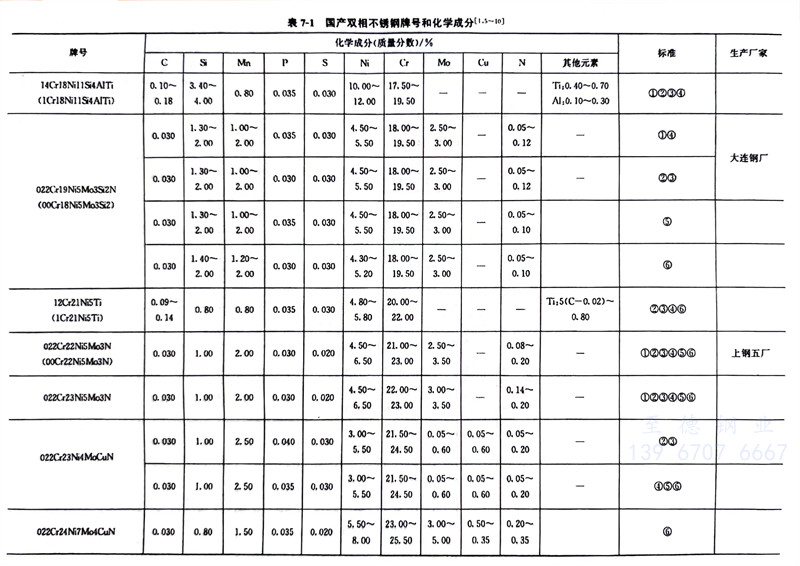 022Cr22Ni5Mo3N(原牌號為00Cr22Ni5Mo3N)已納人 GB/T 1220、GB/T 3280、GB/T 4237、GB/T 20878、GB/T21832、GB/T 21833等標準中。該牌號材料包括鋼棒、鋼板、焊接鋼管、無縫鋼管等,化學成分見表7-1,該鋼相當于瑞典的SAF2205 雙相不銹鋼(中國在20世紀80年代初開始試制相當于SAF2205 鋼的00Cr22Ni5Mo3N)。