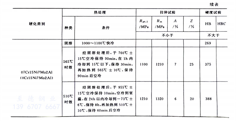 沉淀硬化型不銹鋼是需經時效強化處理以形成析出硬化相的高強度不銹鋼,所以沉淀硬化不銹鋼又稱之為析出硬化型不銹鋼。這類鋼按組織形態可分為馬氏體沉淀硬化型、半奧氏體沉淀硬化型和奧氏體沉淀硬化型三類。沉淀硬化型不銹鋼列入我國國家標準的牌號有05Cr15Ni5Cu4Nb、05Cr17Ni4Cu4Nb (0Cr17Ni4Cu4Nb)、07Cr17Ni7Al (0Cr17Ni7AI)、07Cr15Ni7Mo2Al(0Cr15Ni7Mo2Al)、04Cr13Ni8Mo2Al、09Cr17Ni5Mo3N、022Cr12Ni9Cu2NbTi、06Cr17Ni7AITi,其化學成分見表1-1,力學性能見表1-8。