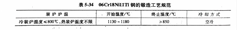 (2)熱(re)加工: 06Cr18Ni11Ti 、0Cr18Ni10Ti、321不銹鋼鍛造工藝規范見表5-34。