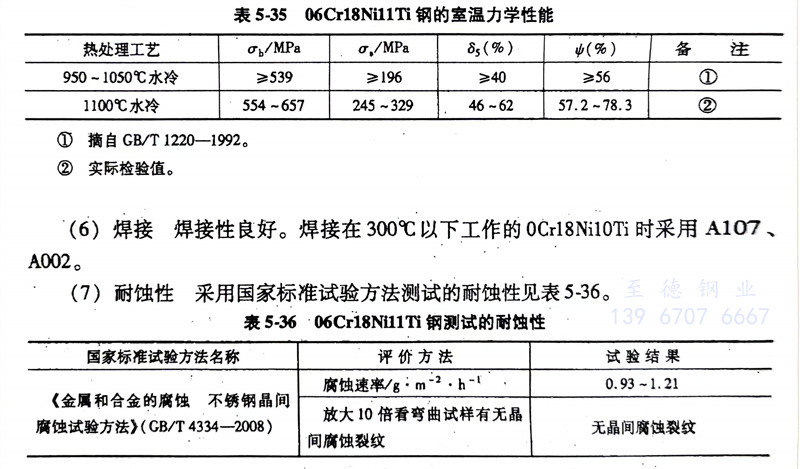 (5)力學性(xing)能: 06Cr18Ni11Ti 、0Cr18Ni10Ti、321不銹鋼的室(shi)溫力學性能見表5-35。