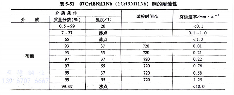(8)耐蝕性(xing): 07Cr18Ni11Nb(1Cr19Ni11Nb)347H不銹鋼的耐蝕性見表5-51。