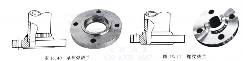 的(de)特(te)點(dian)是管(guan)(guan)子(zi)與法(fa)(fa)蘭之間用(yong)(yong)(yong)(yong)(yong)螺(luo)紋連接,在(zai)法(fa)(fa)蘭內孔加(jia)工螺(luo)紋,將(jiang)帶(dai)螺(luo)紋的(de)管(guan)(guan)子(zi)旋(xuan)合進去(qu),不必焊(han)接,如圖16.41所示。因而,具(ju)有(you)方(fang)便安裝、方(fang)便檢修的(de)特(te)點(dian)。螺(luo)紋法(fa)(fa)蘭有(you)兩(liang)種,一種螺(luo)紋法(fa)(fa)蘭公稱壓力較低(di),一般用(yong)(yong)(yong)(yong)(yong)在(zai)鍍鋅鋼管(guan)(guan)等不宜焊(han)接的(de)場合,溫度反復波(bo)動(dong)或高(gao)于(yu)260℃和(he)低(di)于(yu)-45℃的(de)管(guan)(guan)道(dao)也不宜使用(yong)(yong)(yong)(yong)(yong)。另一種用(yong)(yong)(yong)(yong)(yong)于(yu)高(gao)壓工況,利(li)用(yong)(yong)(yong)(yong)(yong)帶(dai)外(wai)螺(luo)紋并加(jia)工成一定形狀密(mi)封面的(de)兩(liang)個管(guan)(guan)端配透鏡墊加(jia)以(yi)密(mi)封。這種法(fa)(fa)蘭以(yi)往(wang)多用(yong)(yong)(yong)(yong)(yong)于(yu)合成氨生(sheng)產。此外(wai),在(zai)任何(he)可能發生(sheng)裂(lie)隙腐(fu)蝕、嚴重侵蝕或有(you)循環載荷的(de)管(guan)(guan)道(dao)上(shang),應避免使用(yong)(yong)(yong)(yong)(yong)螺(luo)紋法(fa)(fa)蘭。