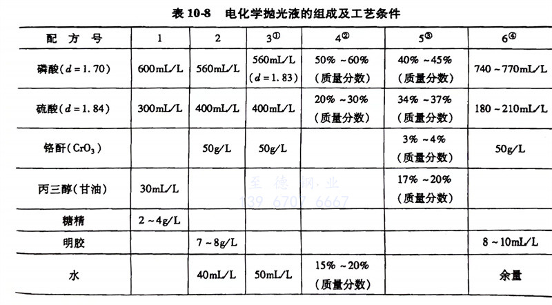 電化學拋光液的組成及工(gong)藝條件見表10-8。